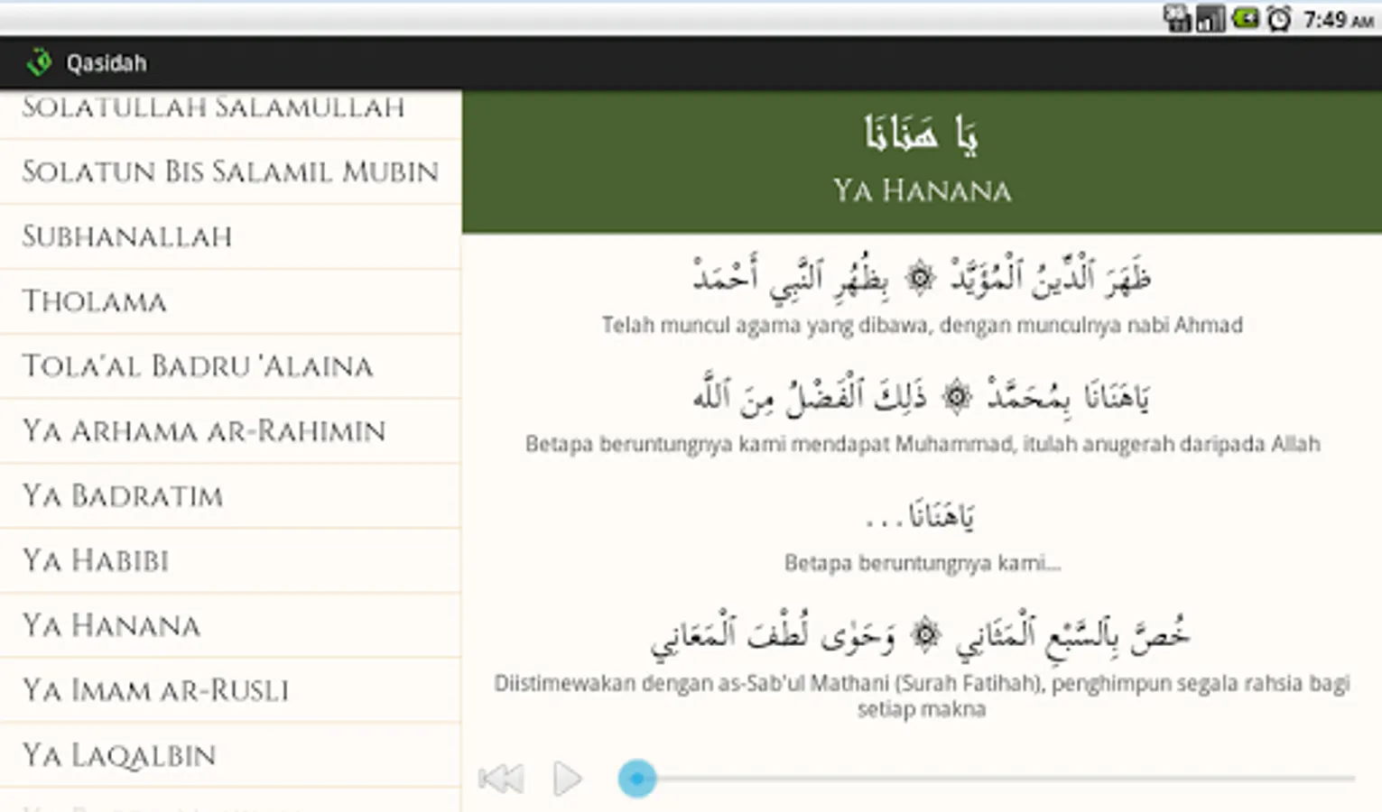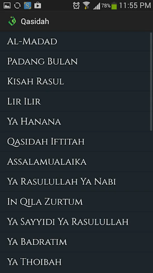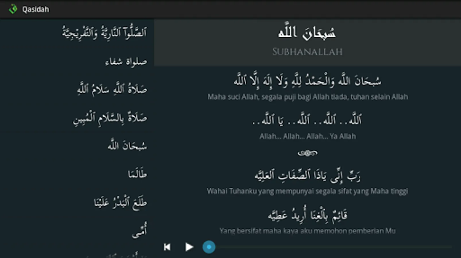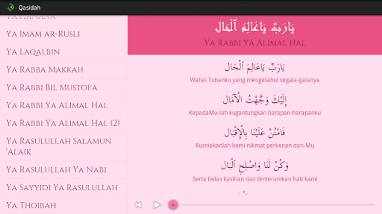 This application contains qasidah collections mostly popularized by Habib Syech Abdul Qadir Assegaf along with some solawat