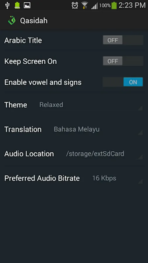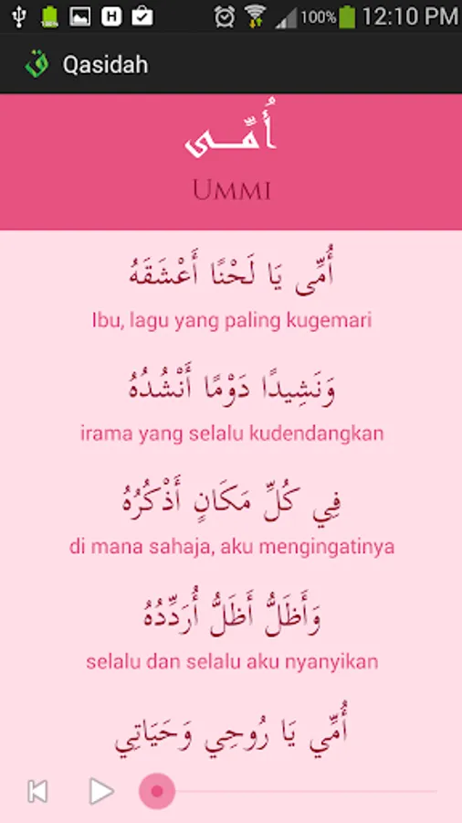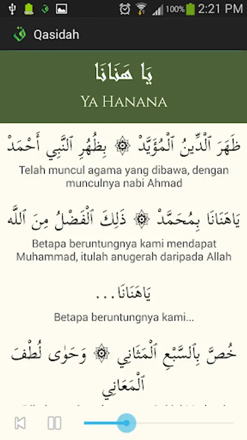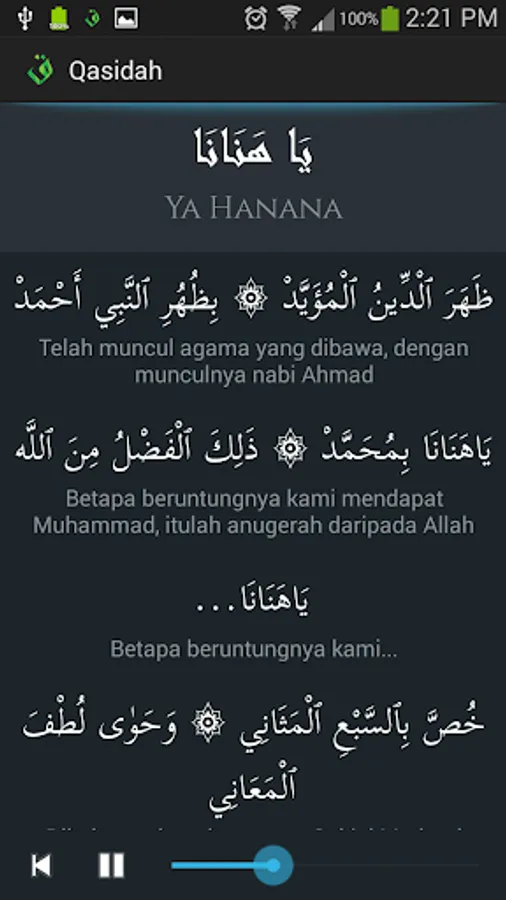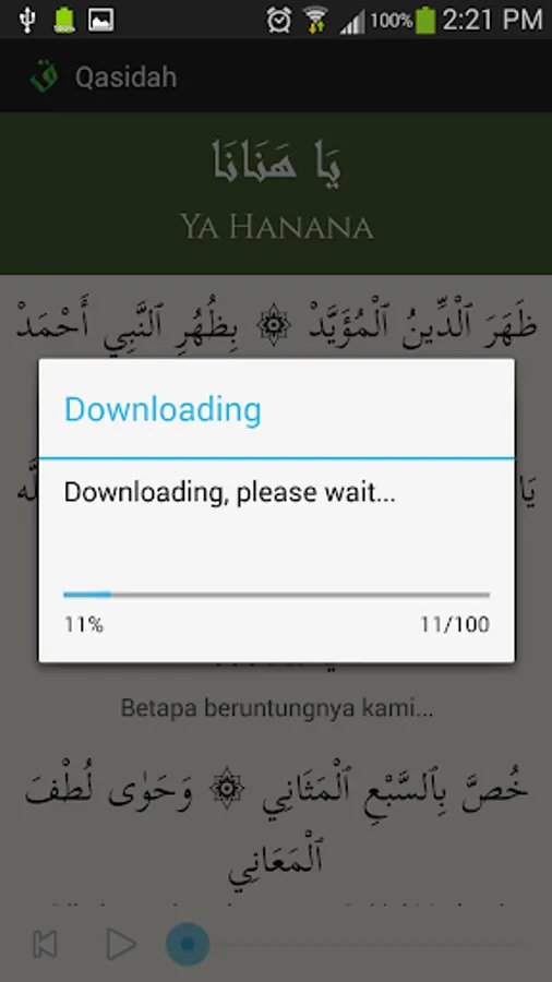 If the audio stopped while in the middle of playing, redownload by deleting file in [SD]/dakwatdigital/qasidah/nama_audio and then click play button to download again.