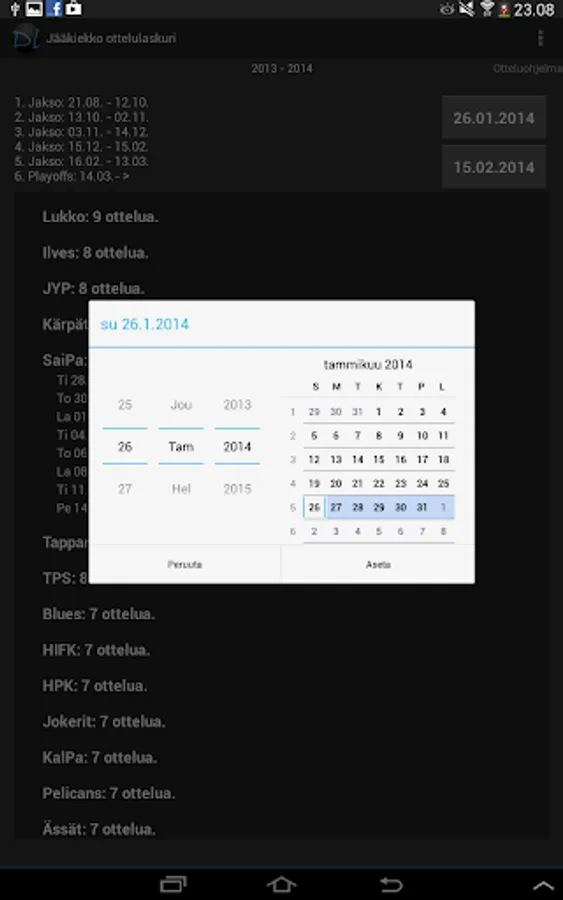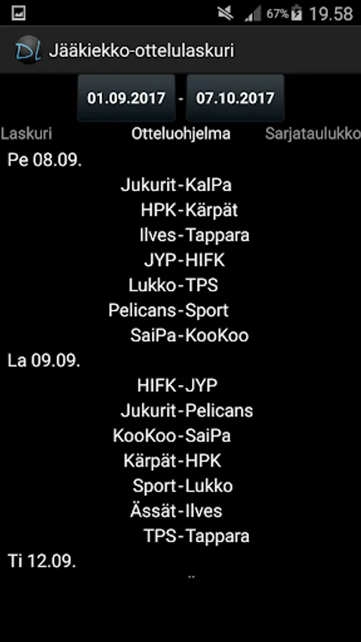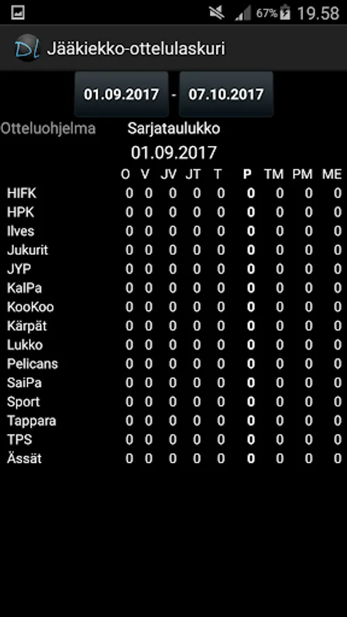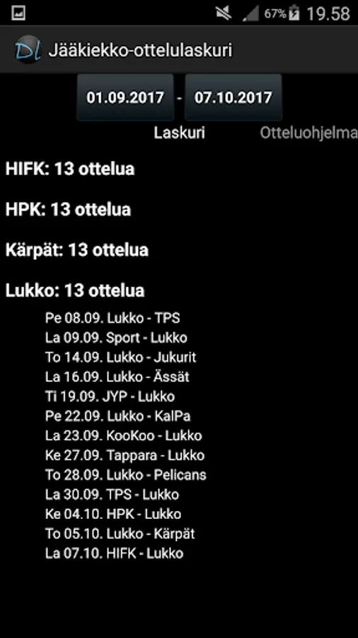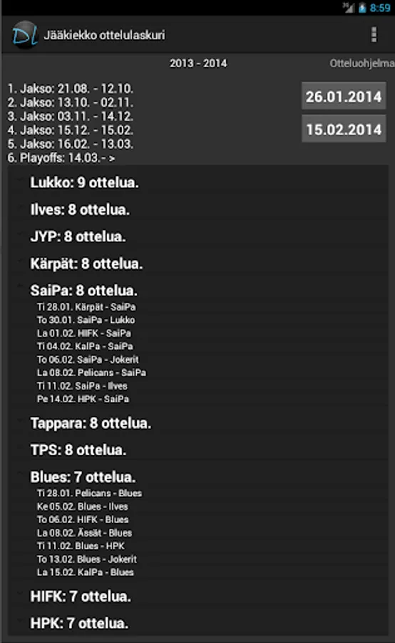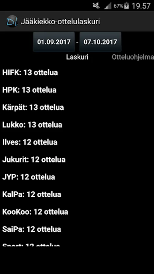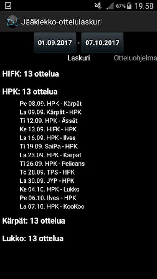 Used to count ice hockey matches for teams on Finland´s national league Liiga.
