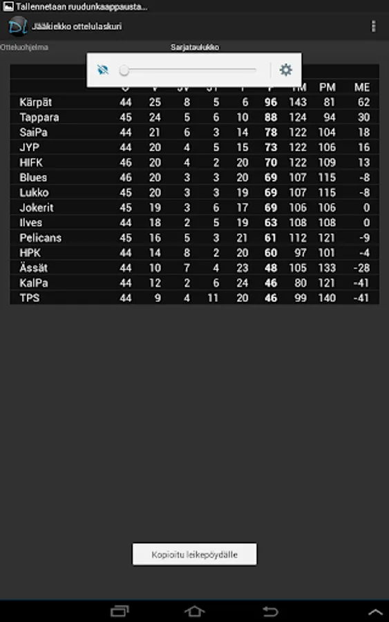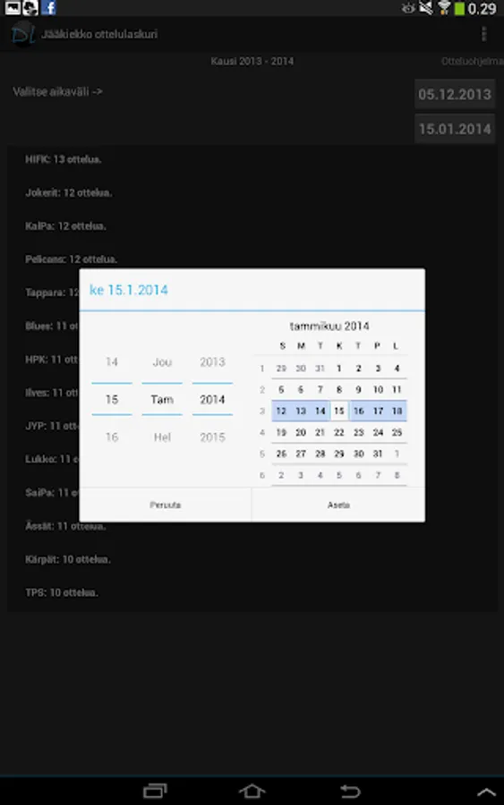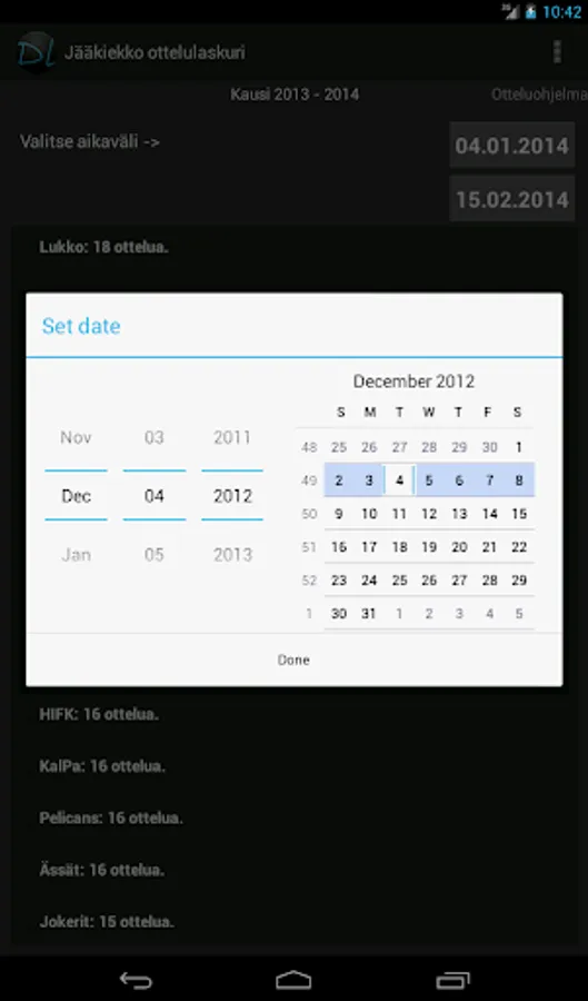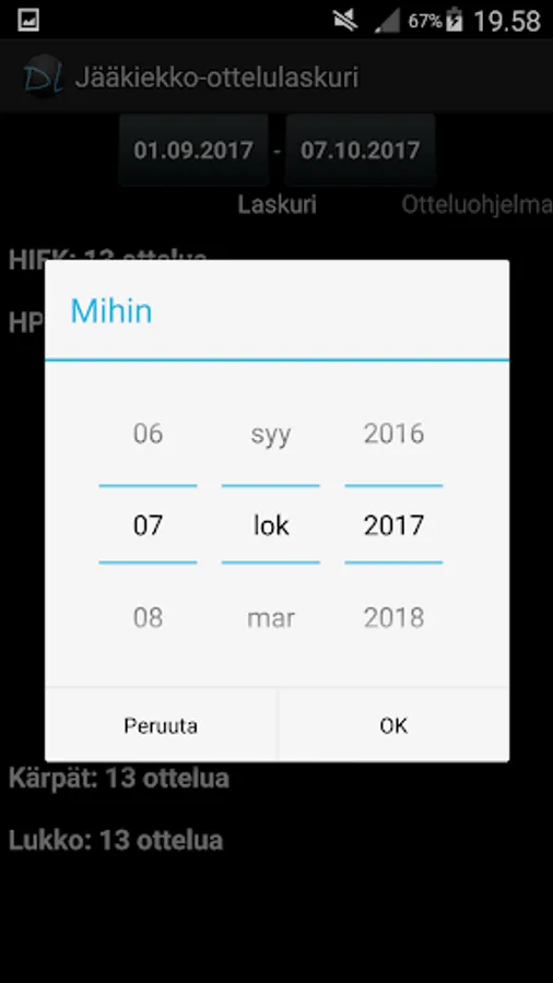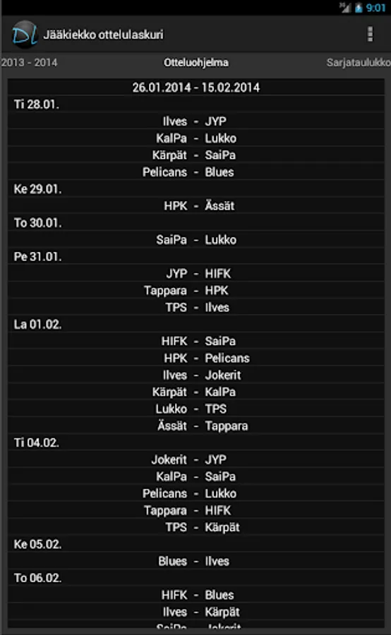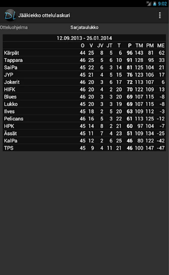 Used to count ice hockey matches for teams on Finland´s national league Liiga.