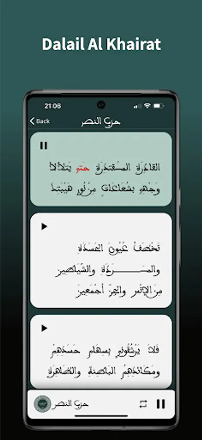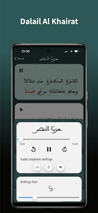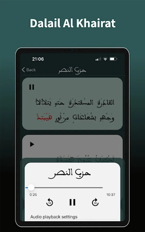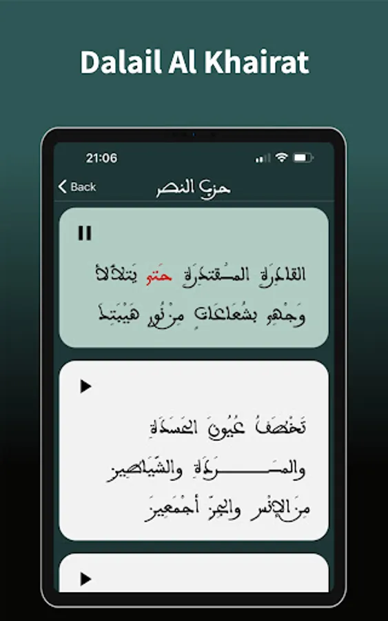 Thousand of apps of Dalail are available in the world, but in this app all the Hizbs (Sections) are arranged in serial order of the weekday so that readers can recite easily without any difficulty. There is also an audio recitation which is followed word by word to facilitate the reader.