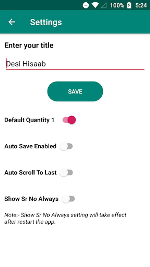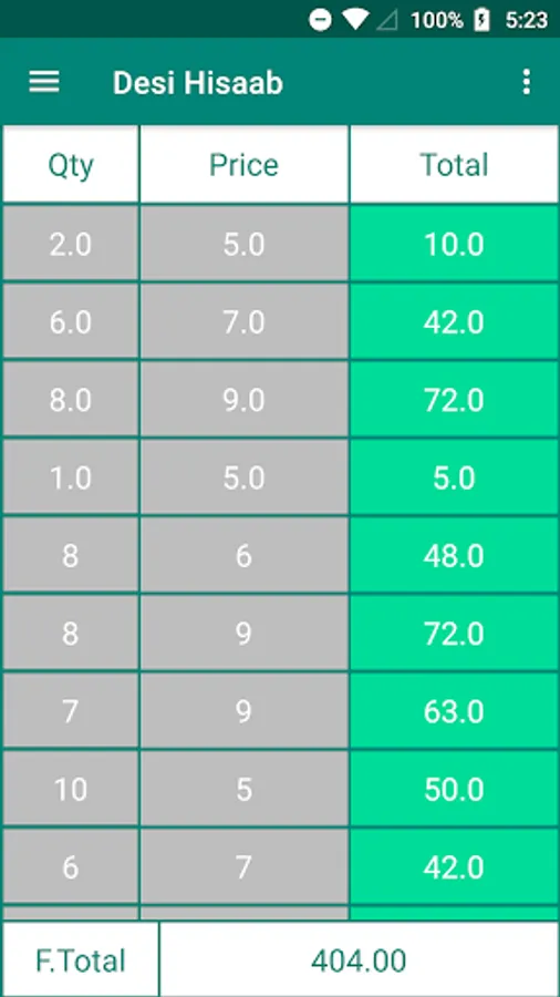 User can calculate normal bills which includes quantity and price multiplication and normal total. User can set title as per his/her need. User can contact to developer using about us.