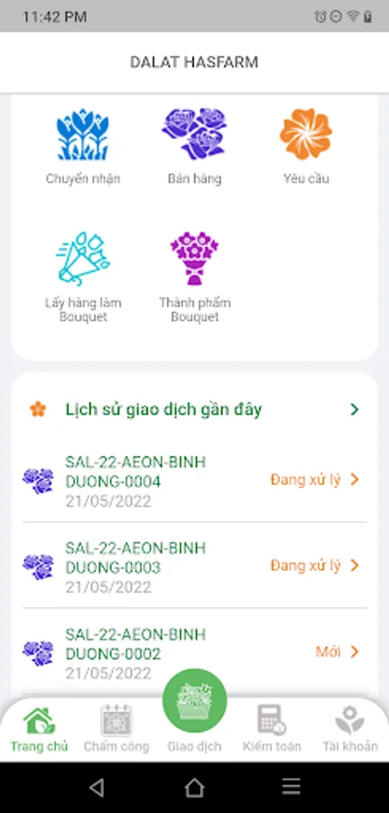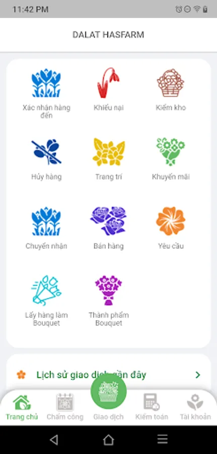 Transaction management application of flower shops in Dalat Hasfarm system. The application also allows to perform audits, timekeeping in stores and a number of other convenient features.