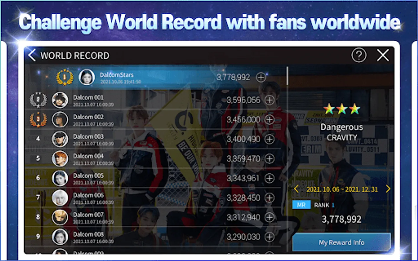 - Participate in the Weekly League and compete with other global K-POP fans for a higher rank!