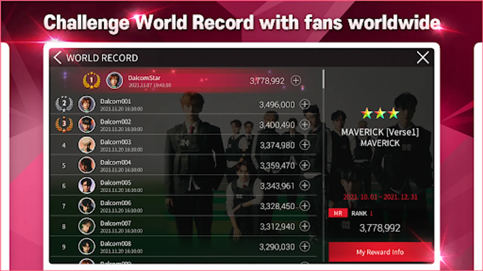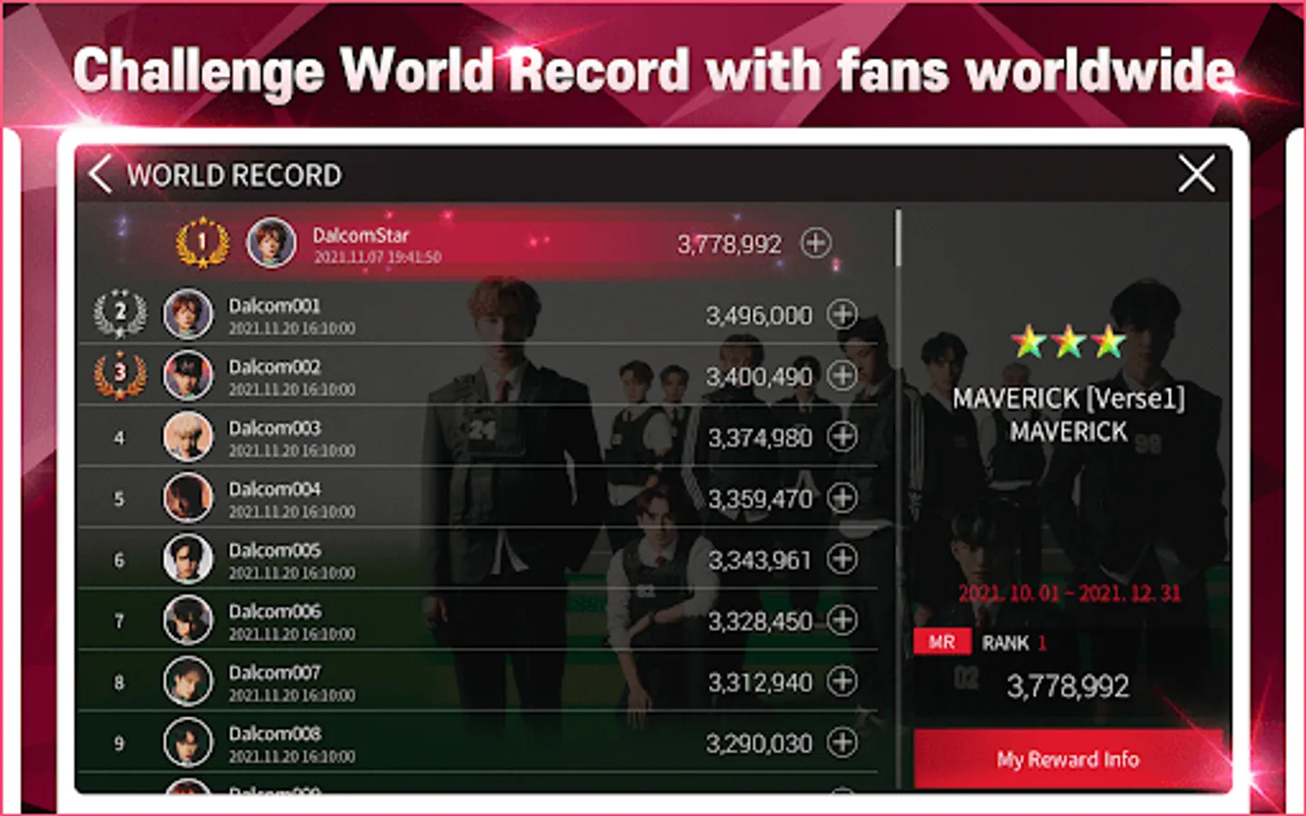 - Participate in the Weekly League and compete with other global K-POP fans for a higher rank!