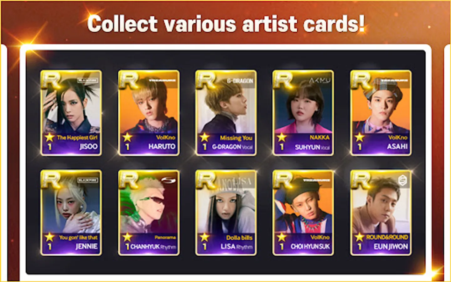 Collect YG artists' Cards and Power Up the Cards into prettier and more powerful Cards!