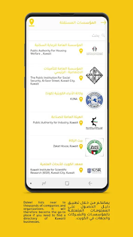Daleel is an application dedicated to serve the Kuwaiti public in giving them directions and connecting them to their surroundings. Inspired by 'yellow pages', Daleel aims to compress everything the user needs to accomplish his or her task of the day. Find your location, follow the steps and reach safely.