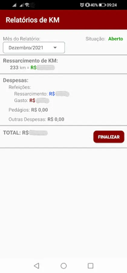 Application for registration and reimbursement of travel for employees of Dália Alimentos.