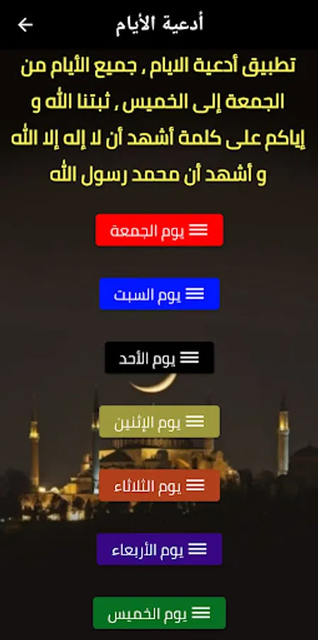 The application of supplications of days is one of the applications that a Muslim needs in his daily life. It has the best supplications on Friday before sunset in writing with all days of the week, and do not forget us from the favor of your supplications.