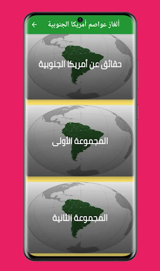 The South American capitals puzzle application is unique, with a set of entertainment puzzles that distinguish it from the rest of the applications in what it contains from a unique bouquet of puzzles through which you can learn about all the capitals of the Latin continent.