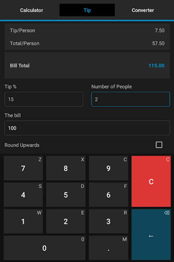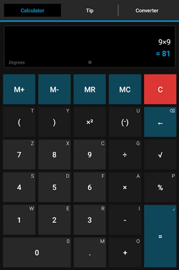 Keyboard Calculator is a regular scientific calculator, a tip calculator and a unit converter at the same time.