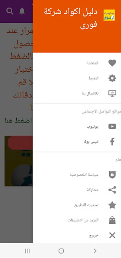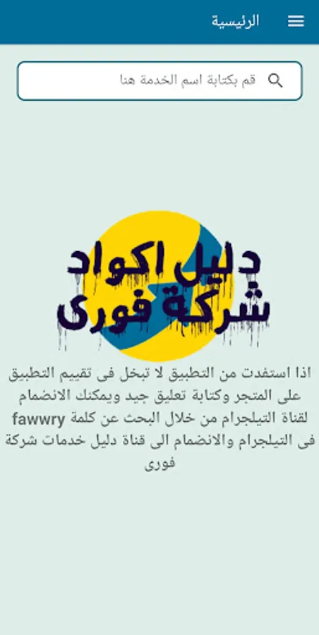 The application of the Fawry Codes Guide application is an application that benefits the owners and owners of payment machines belonging to the Fawry Payments Company. The application saves time and effort in knowing the code for a particular service. By simply searching within the application for a service code, for example, renewing the Hekaya Etisalat package, the application displays the service code. All you have to do is By taking the code and entering the machine or the immediate Android device, choosing to pay with the service code, then writing the code that the application gave you, you will find that the service appeared directly in front of you without navigating between the list until you find it.