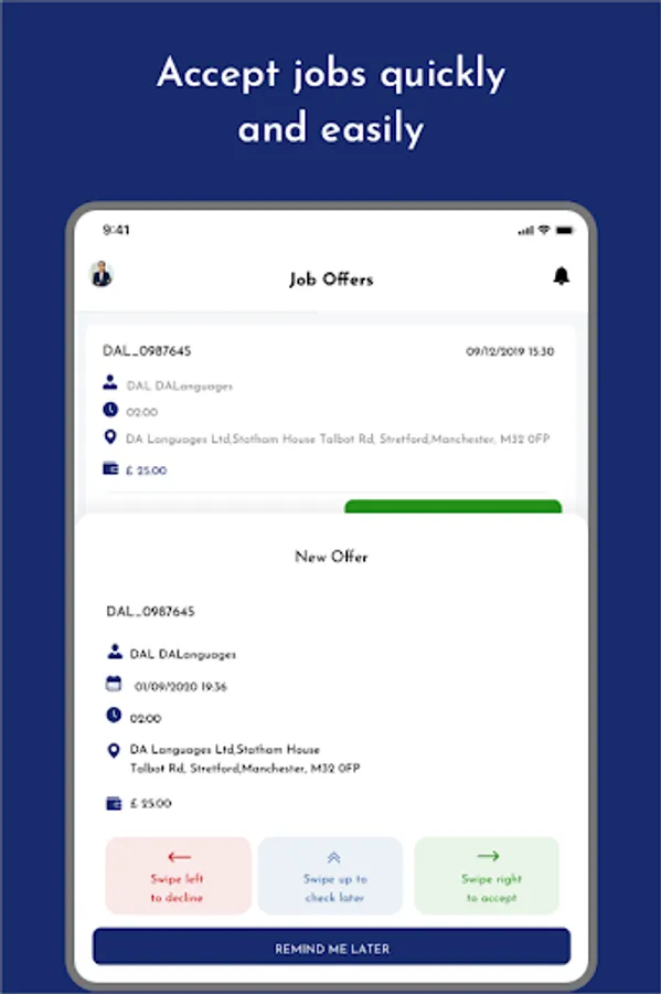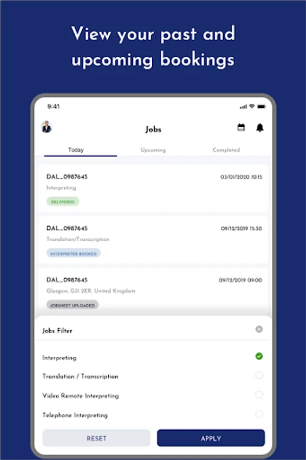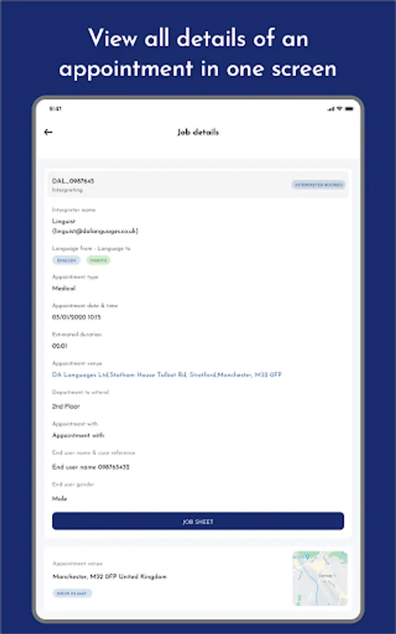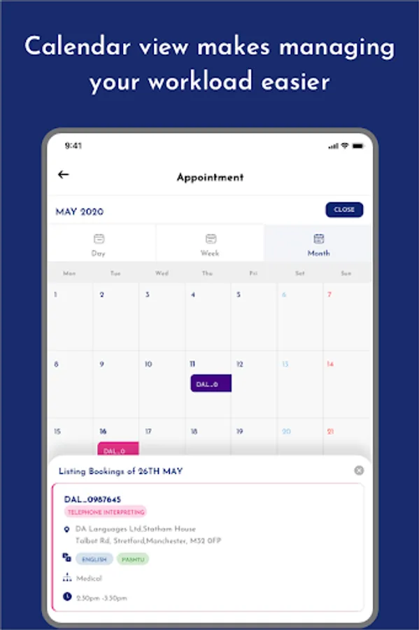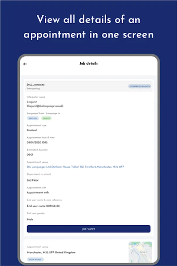 Check your schedule on the go 24/7, and never miss an appointment within-app route planning. DA Languages’ new app also allows you to view live analytics of your jobs and schedule so you can plan your work life to suit you.
