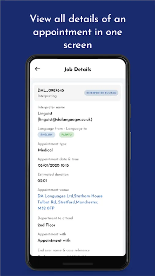 This app is accessible for DA Languages interpreters only. If you would like to find out how you can become an interpreter, visit our website at www.dalanguages.co.uk/careers.