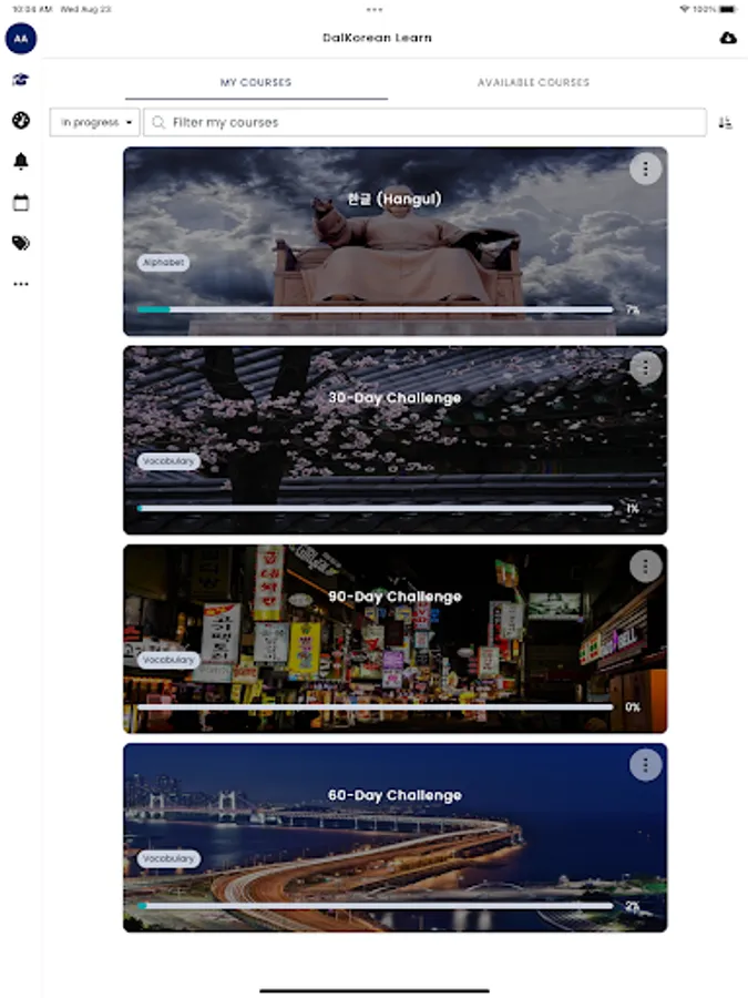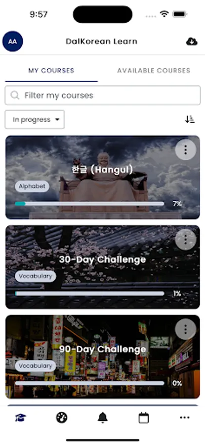 This is an application to learn Korean easily and in a fun way. Choose a course that you want to learn.