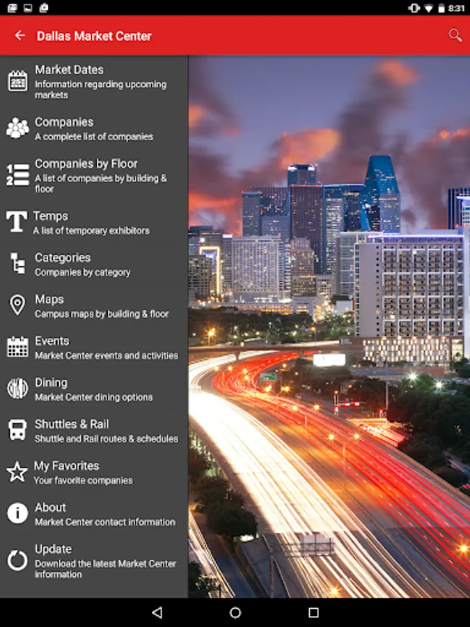 This is the official Dallas Market Center App. It is designed with multiple tools to help buyers navigate Market with up-to-date information on exhibitors, product, DMC schedules, and upcoming events.
