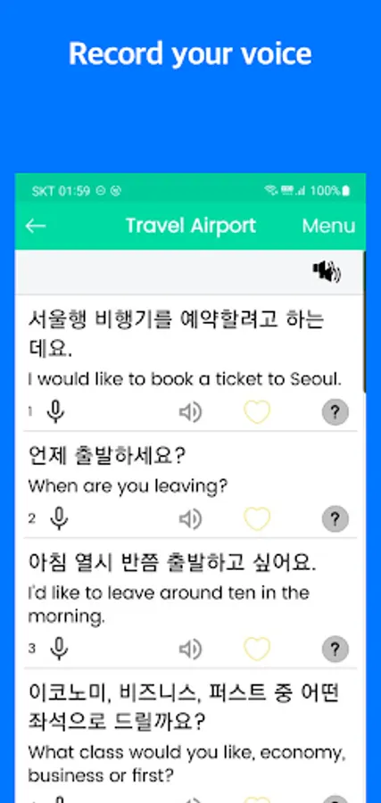You can record your voice and listen after Korean's voice