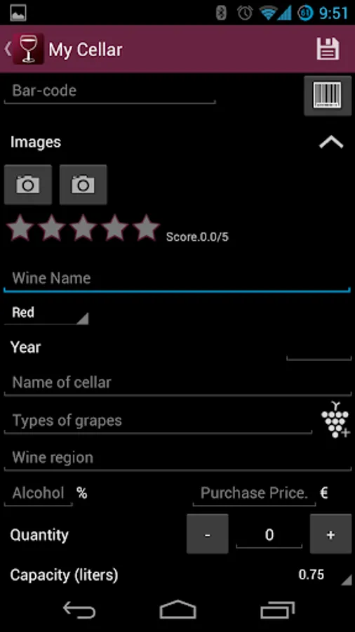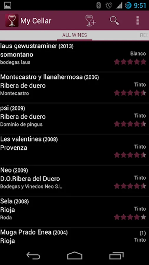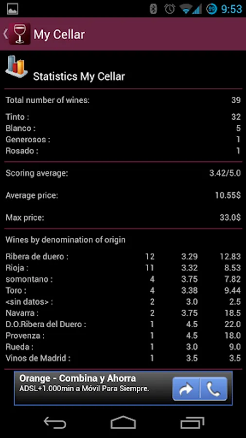 Other options My Vinoteca are export and import your list of wines to your Google Drive, export your list of wines at a ficher csv, import a csv file sharing on Facebok, see the statistics of your wine cellar ...