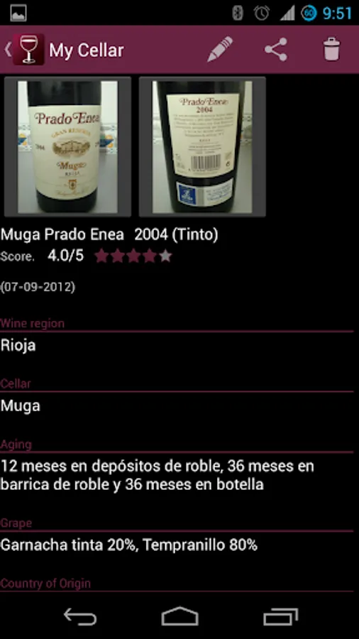My Vinoteca allows you to create a record of the wines to be tested, noting their main characteristics and personal tasting notes. Also you can search in the more than 11,000 chips the wine and add to your collection, you can share your list with other users.