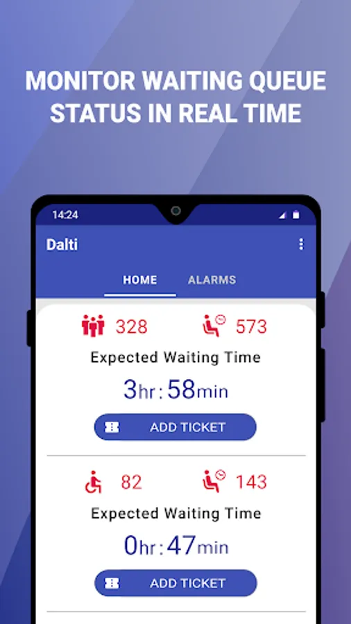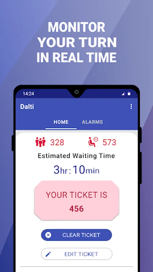 ✔️ Monitor the waiting queue status in real time and get an estimation of the total time that you will have to wait.