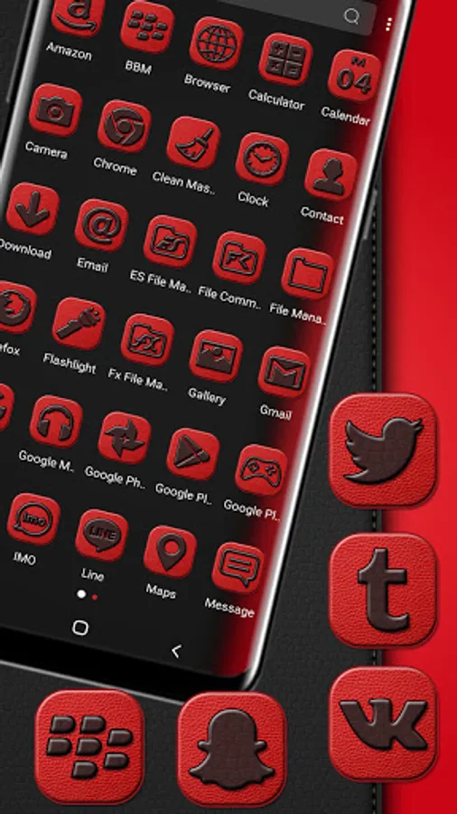 It's time to download the Black Red Leather theme and get to know the best Android theme style. Try our free Launcher Theme: Black Red Leather Theme! Our new theme for Android. Download this theme for your phone Black Red Leather Theme. We're sure that you can find your first Black Red Leather theme launcher. This stunning Leather Theme is especially designed for guys who enjoy cool Leather design and new look icon set. Black Red Leather Theme includes succinct fun design icon pack.