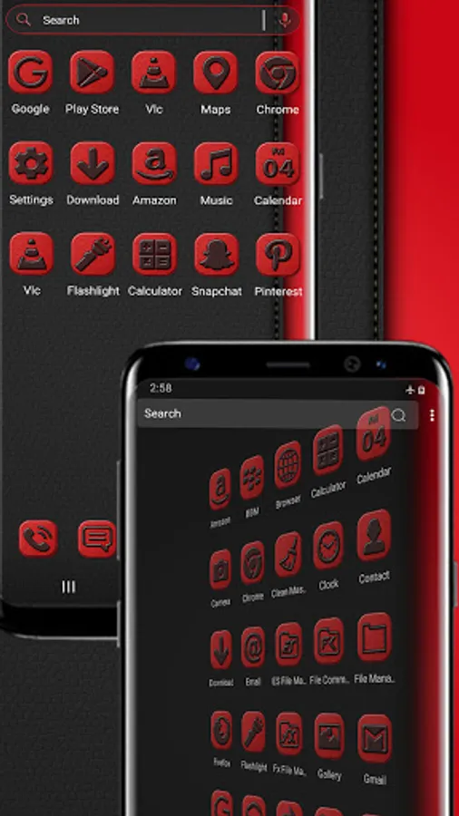 This Black Red Leather Theme and icon pack and HD wallpaper can give you special Leather style design that you have never seen before!