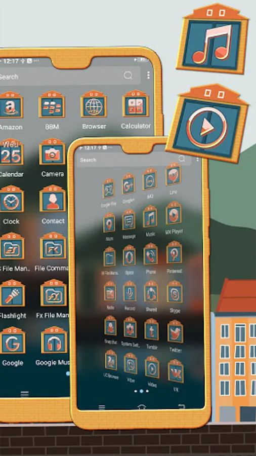 Please rate and comment if you enjoy this Launcher theme! To give you a unique personalization option for your phone, we have developed the City Painting Theme.