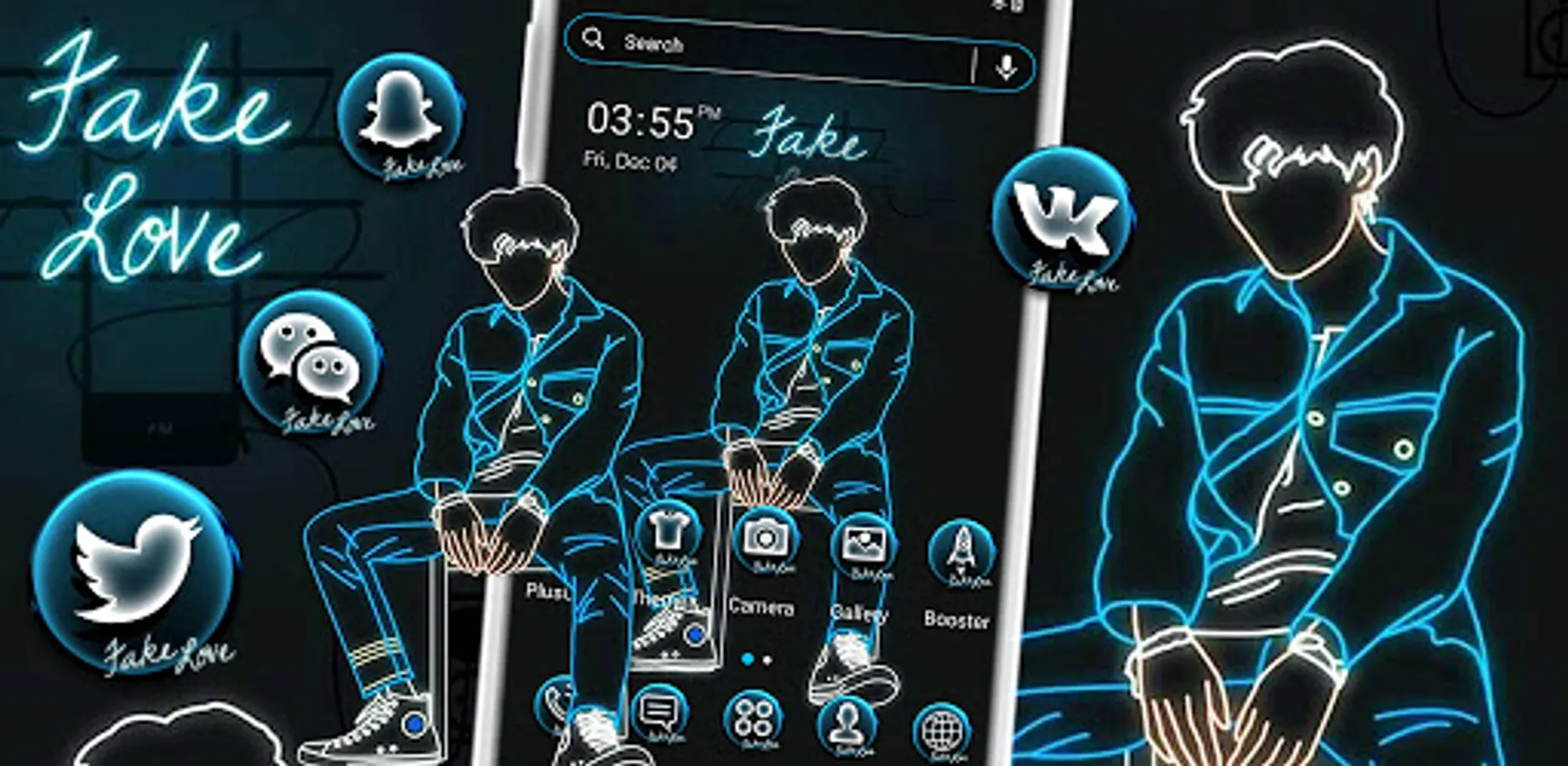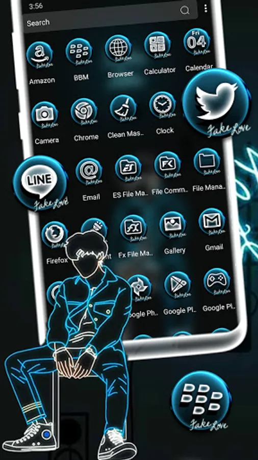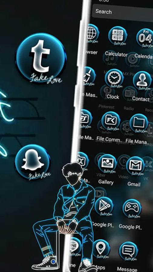This Neon Sad Boy Theme and icon pack and HD wallpaper can give you special Neon Boy style design that you have never seen before!