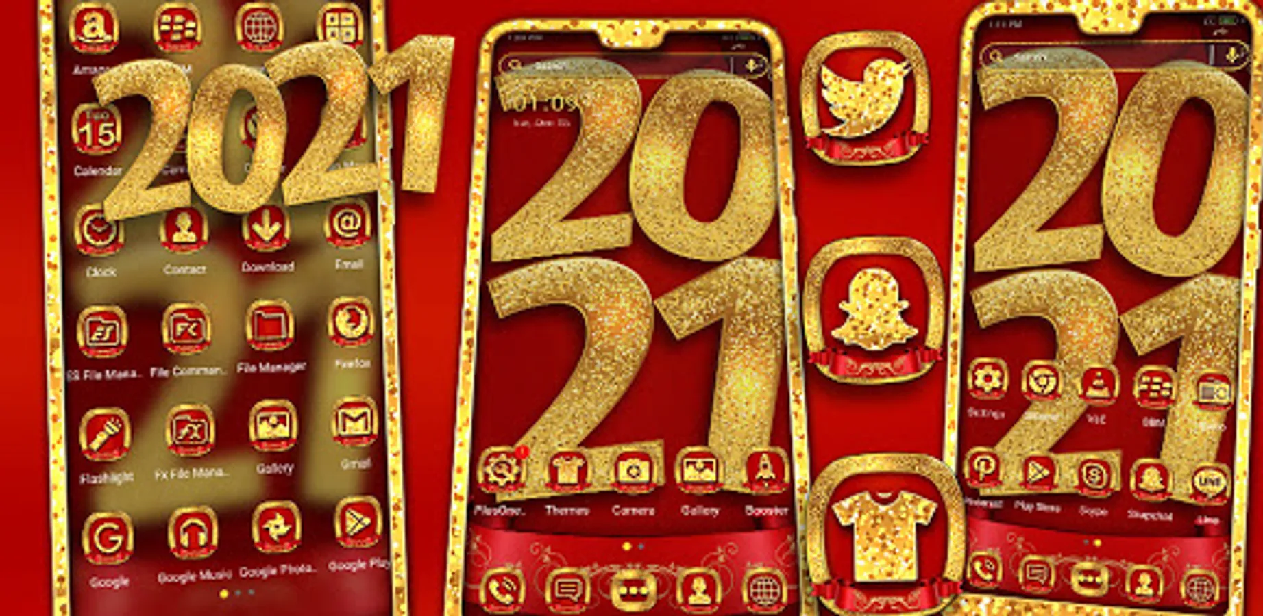 This 2021 New Year Theme and icon pack and HD wallpaper can give you special New Year style design that you have never seen before!