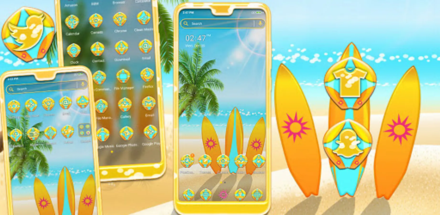 This Sunny Beach Theme and icon pack and HD wallpaper can give you special Beach style design that you have never seen before!