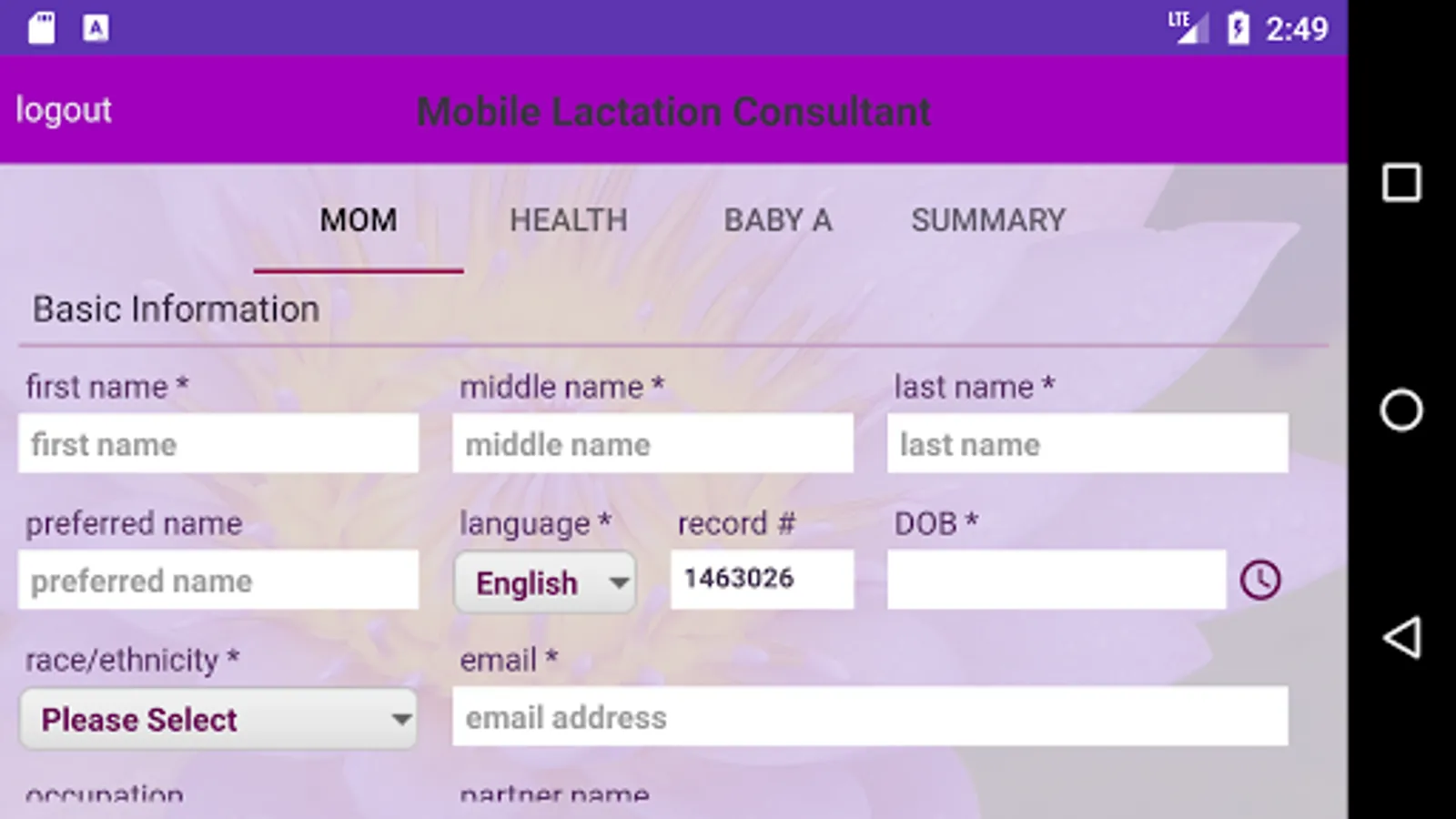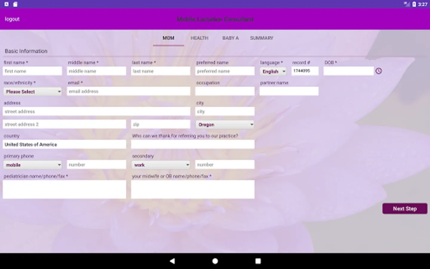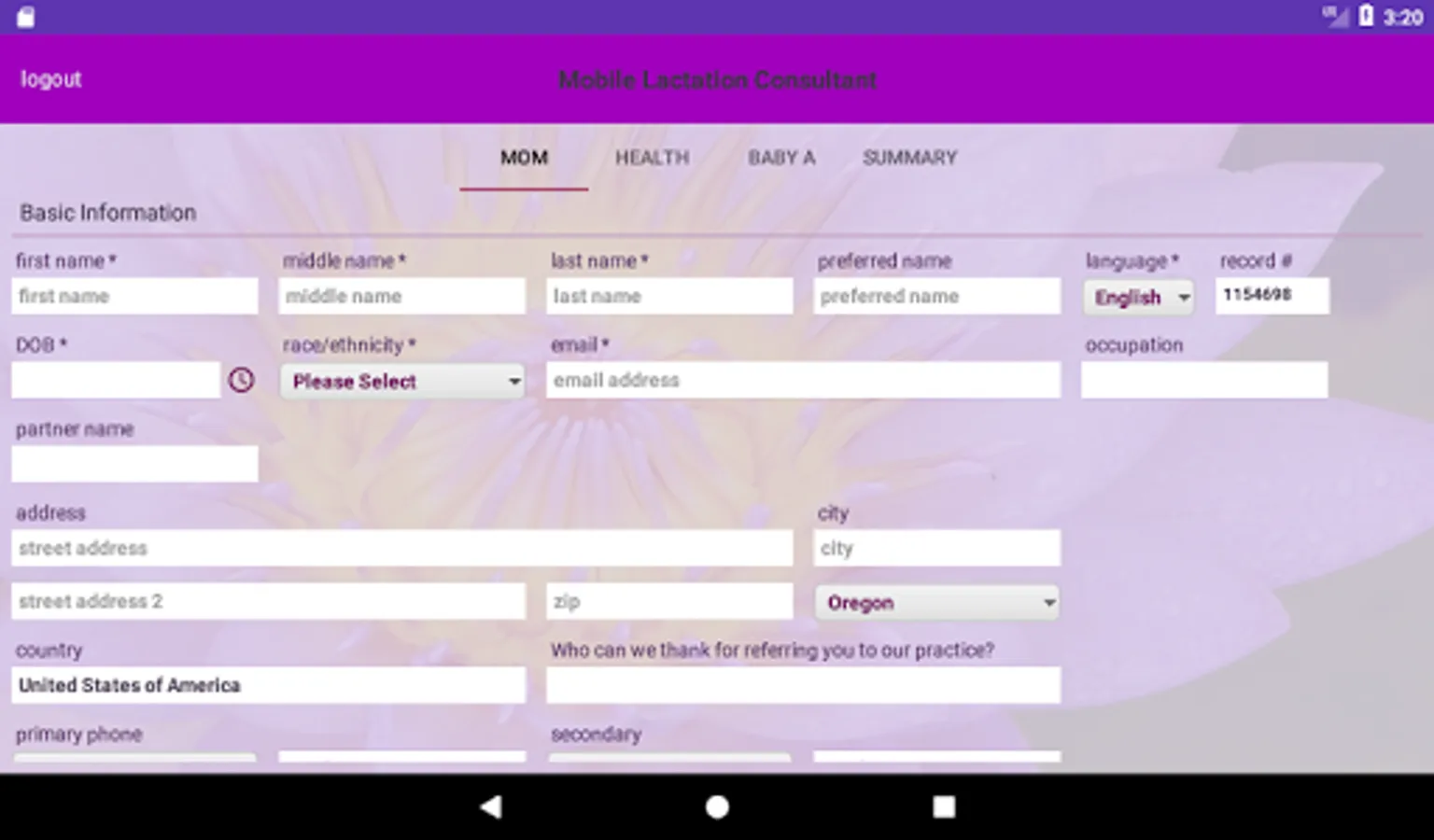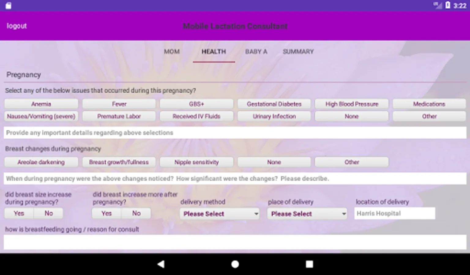 Mobile Lactation Consultant is the premier electronic charting and patient health records software for Lactation Consultants. Client's use this portal to fill out their health history, sign documents and even message or chat with their provider. Please visit our website to learn about the main Mobile Lactation Consultant charting app.
