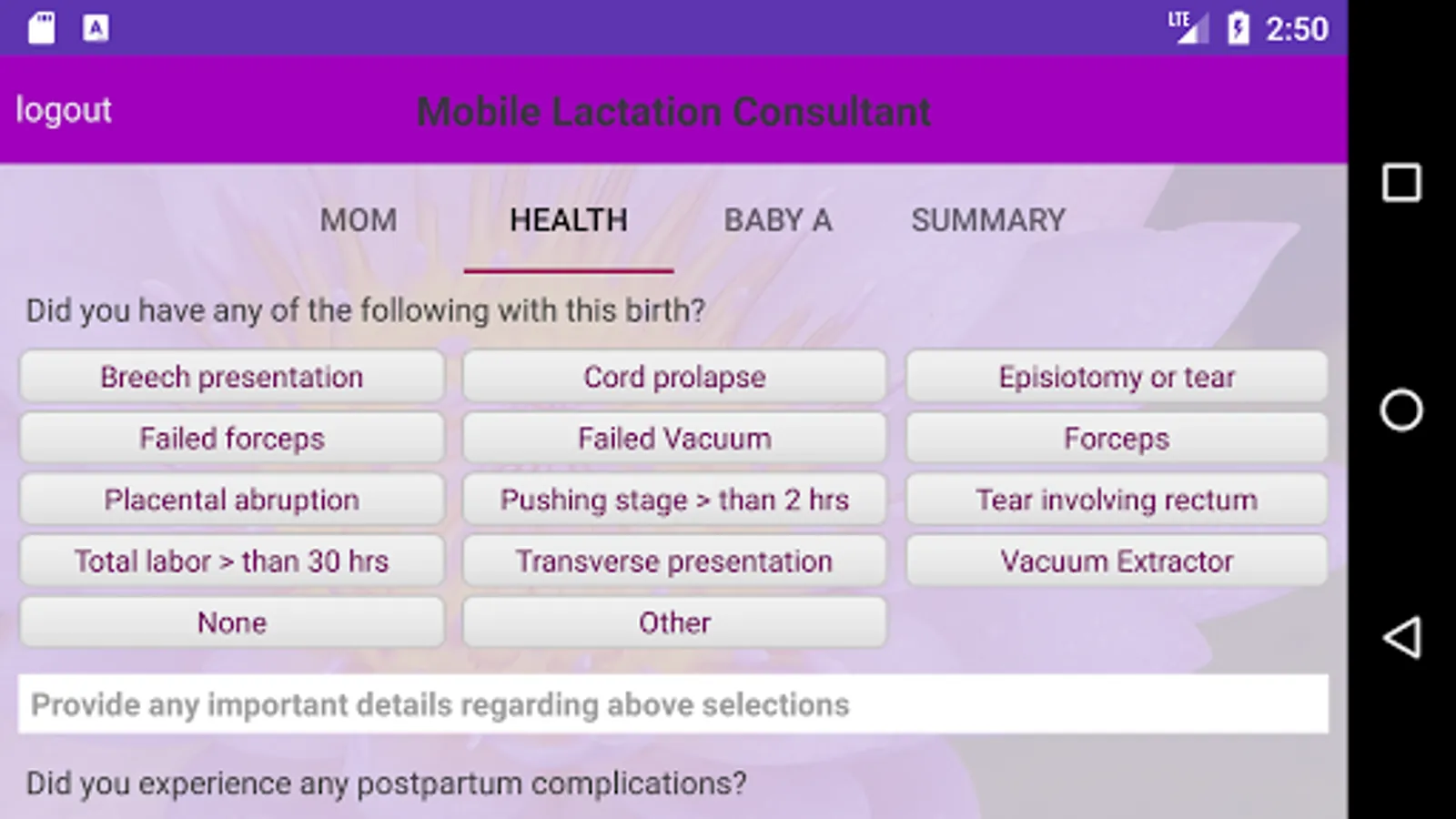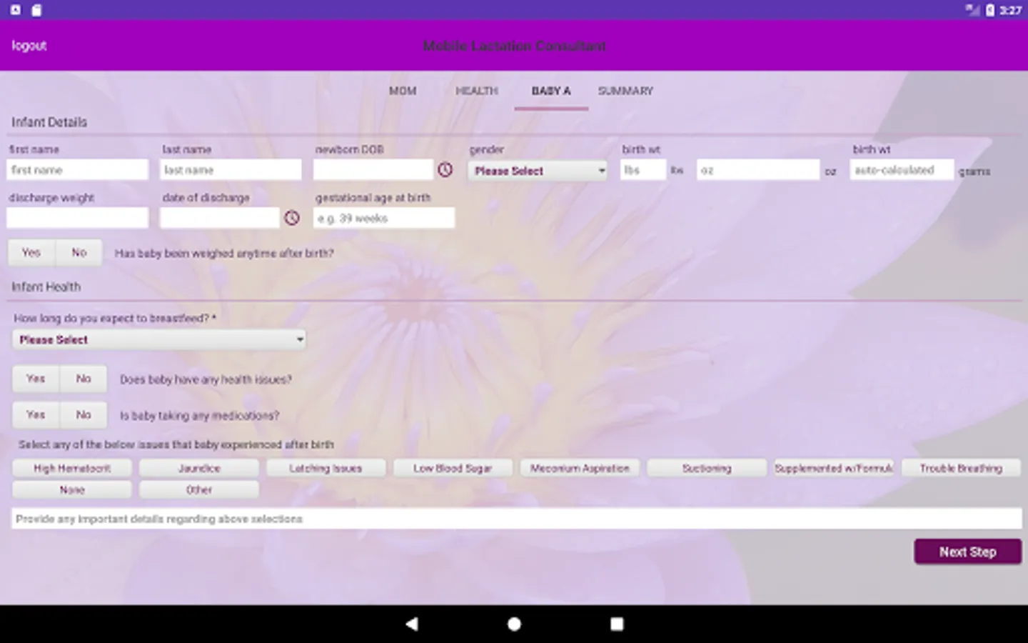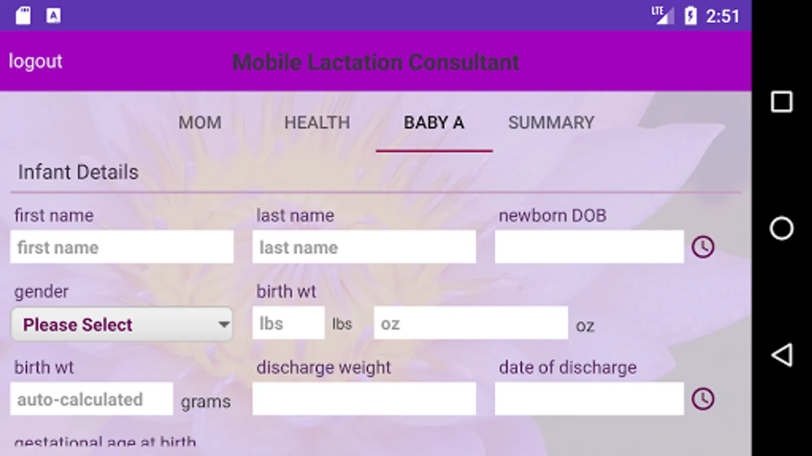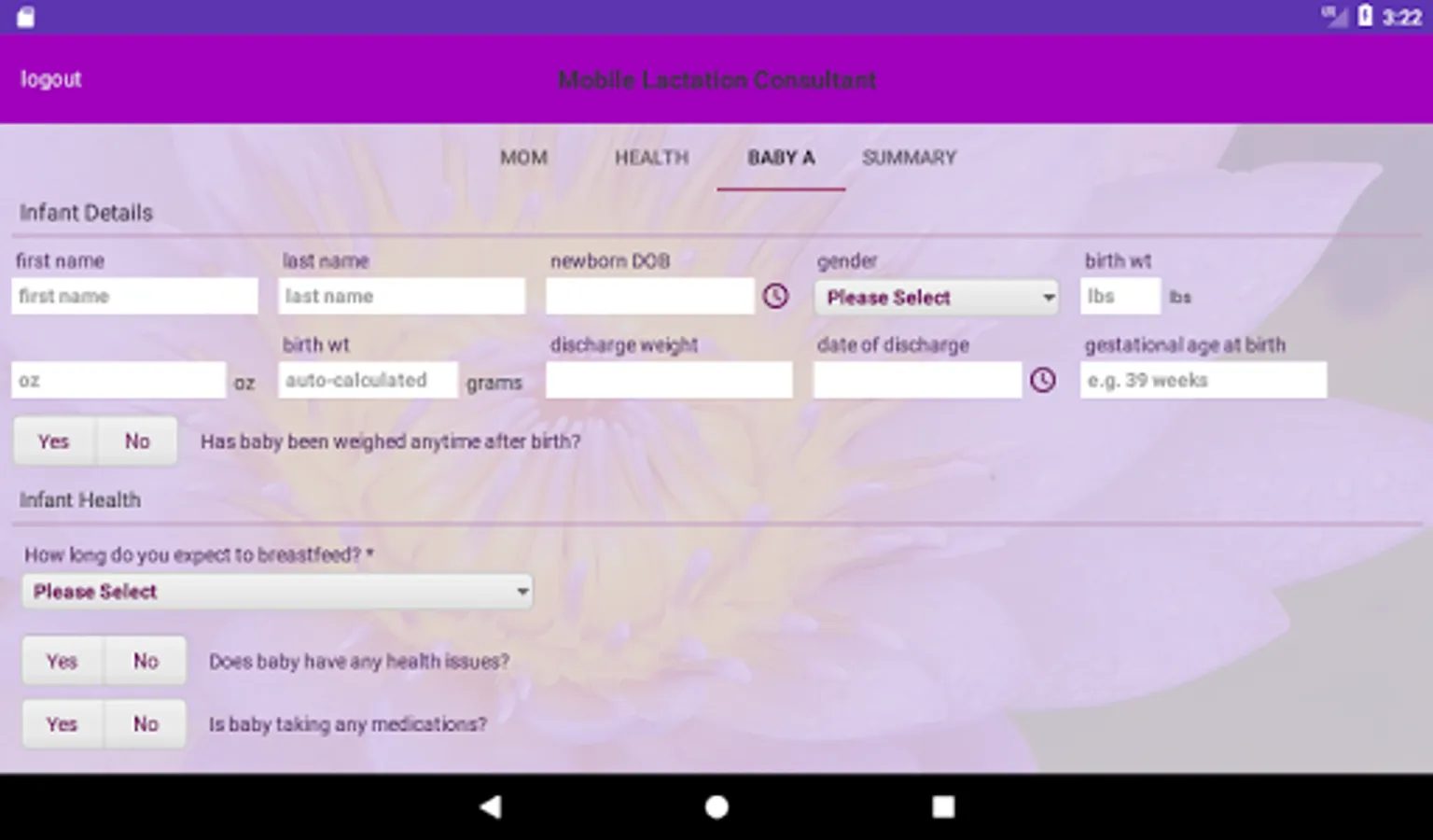 Mobile Lactation Consultant is the premier electronic charting and patient health records software for Lactation Consultants. Client's use this portal to fill out their health history, sign documents and even message or chat with their provider. Please visit our website to learn about the main Mobile Lactation Consultant charting app.