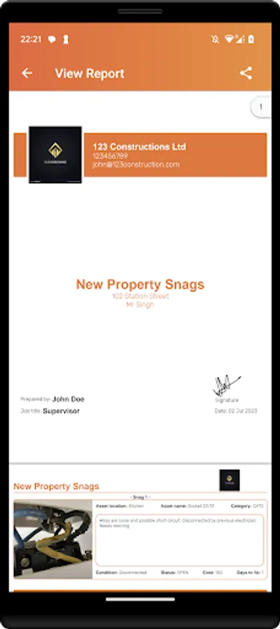 Instant Snag Reports: