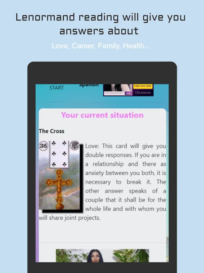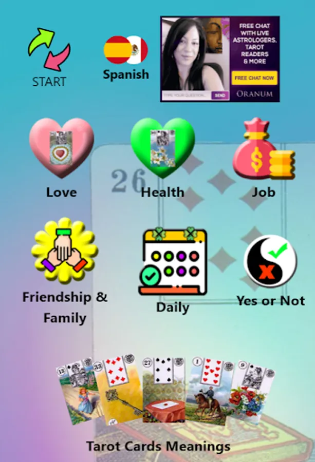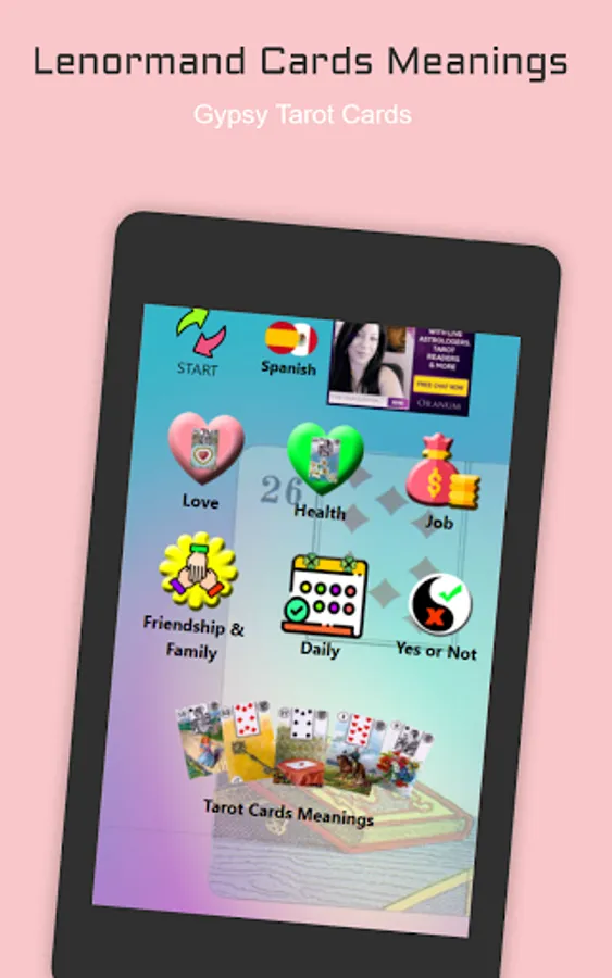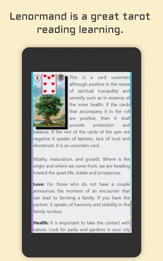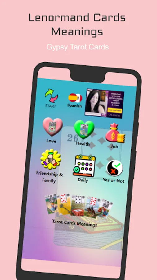 Tarot reading with playing cards with a deck of lenormand cards is pleasure for distraction purposes, but you can also use to study your take on facets of your life. ๐โโ๏ธ Free daily tarot interpretation will give you refined and advanced answers about love, career, family, health and much with this divination app.