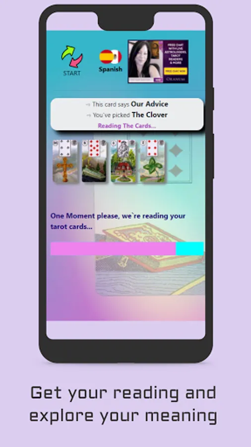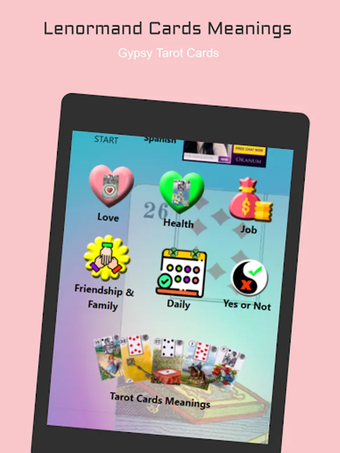 Cartomancy reading suggests divination done with a standard deck of playing cards like Lenormad spread. Gypsy tarot reading free app, you can choose cartomancy lenormand cards to know your destiny with this app.