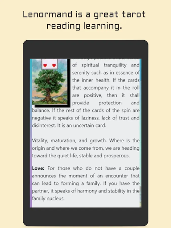 You can check our app's ratings & reviews of cartomancy learning, we can say Marmara - Lenormand is a great free real tarot card reading app learning. Free gypsy tarot reading application give you answers divination about your future love with this gypsy desk.