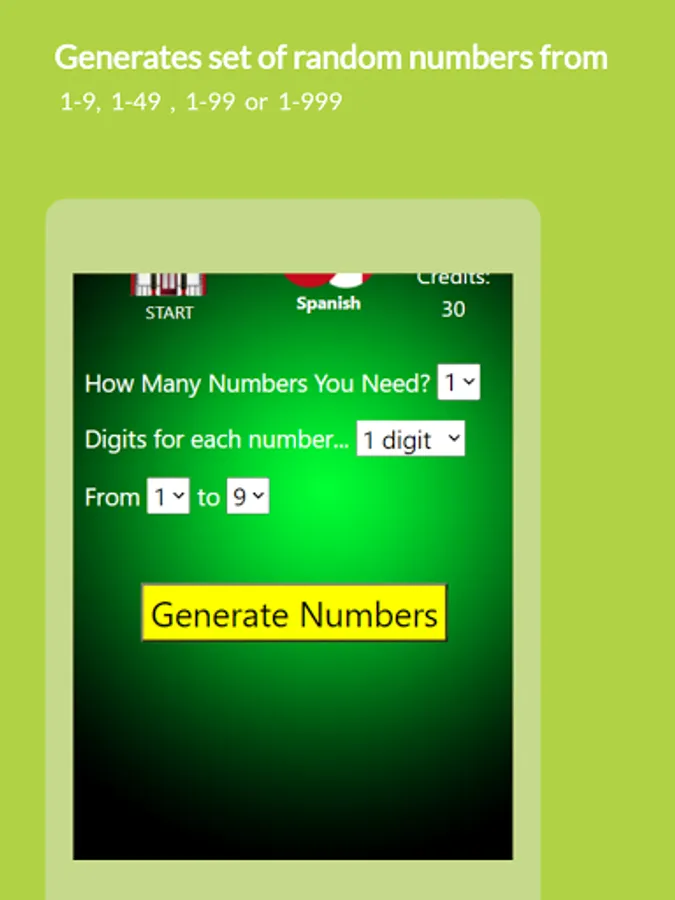 This random number picker app generates a set of random numbers from 1-49, 1-80 1-99 or 1-999, by example four numbers or daily4, it takes a number every time you click the button of free random number generator app, you would say " it changed my life forever".