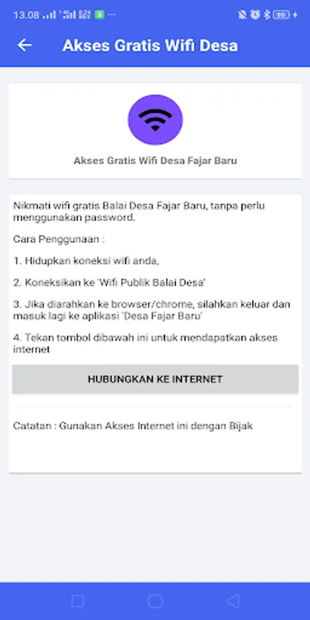 With the release of the application "Fajar Baru Village Government - Mesuji", it is hoped that it can provide services and access to information transparency related to the village, and can be operated on all android-based devices and can be downloaded for free by all levels of society.