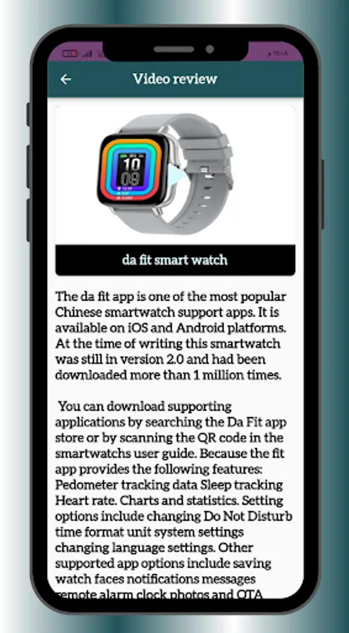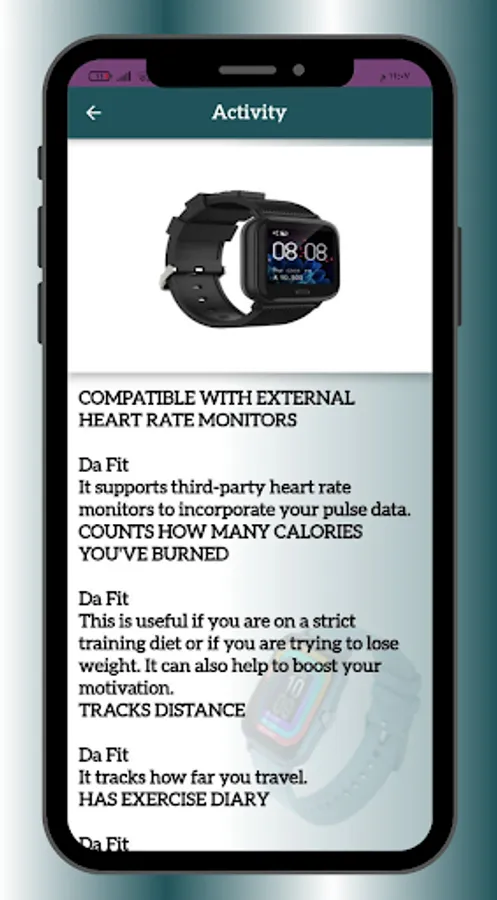 Welcome to the da fit smart watch Guide app! This application provides you with a wealth of information about the da fit smart watch.