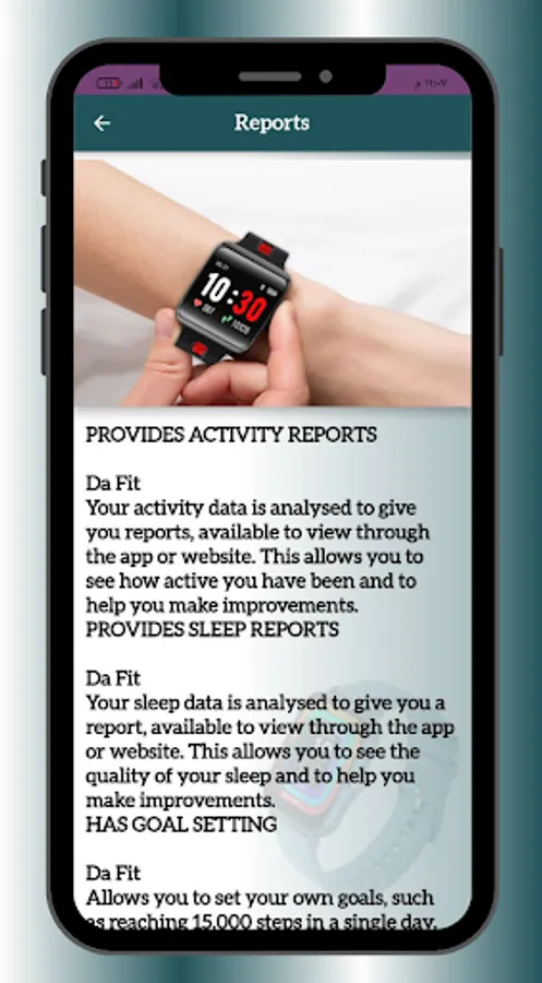 da fit smart watch app content :
