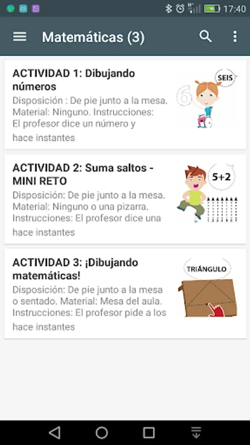 It presents a series of physical activities lasting between 5 and 10 minutes, designed to be developed in the classroom during school hours by the tutor or specialist, with little specific material and a simple, fun and meaningful way to students.