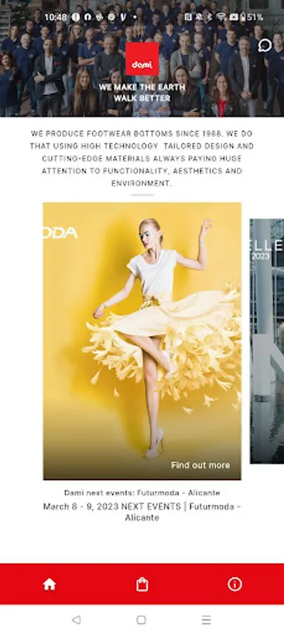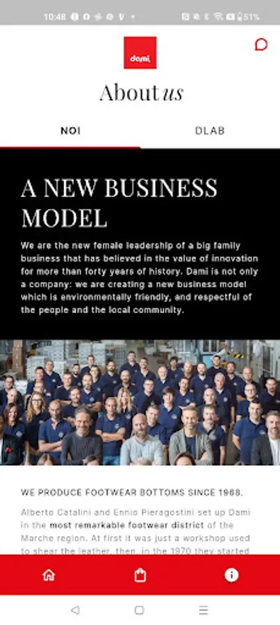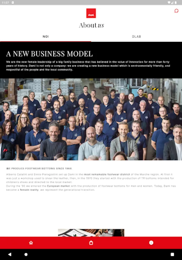We are the new female guide of a large family business that has been through over half a century of history, believing in the value of innovation. For us, Dami is not just a business: we are creating a new business model that respects the environment, people and the community. We put quality at the center. With an innovation journey, starting from people and continuing in the process up to the product, we respond to the needs and desires of our customers. Innovation comes from the training of the people who work with Dami, because we believe that growing together, as a team, is the key to lasting success. We adopt policies that respect the environment, but above all our collaborators, customers, suppliers and the community. Sustainability is a founding value in every aspect of our business. Our goal is to offer sustainability, design and functionality of Dami soles.