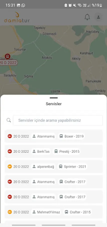 Damlatur helps tour companies to plan their service organizations. You can view and follow company services on the map and plan their routes. Passengers can be registered. Registered passengers can log in to the system and see their addresses and the service they are connected to on the map. The project optimizes routes with the shortcut algorithm.