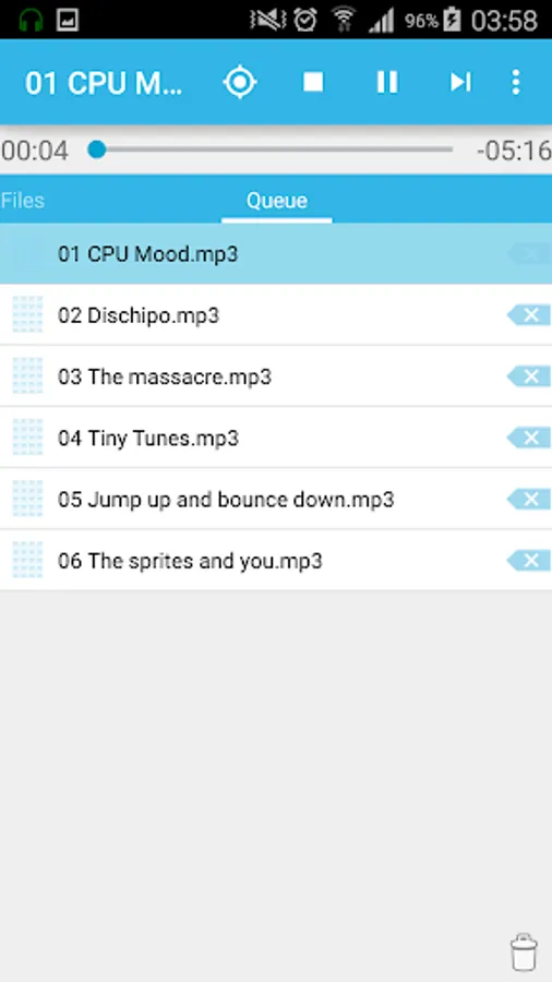 • tap on a file to play it and all the other checked files in the current directory;