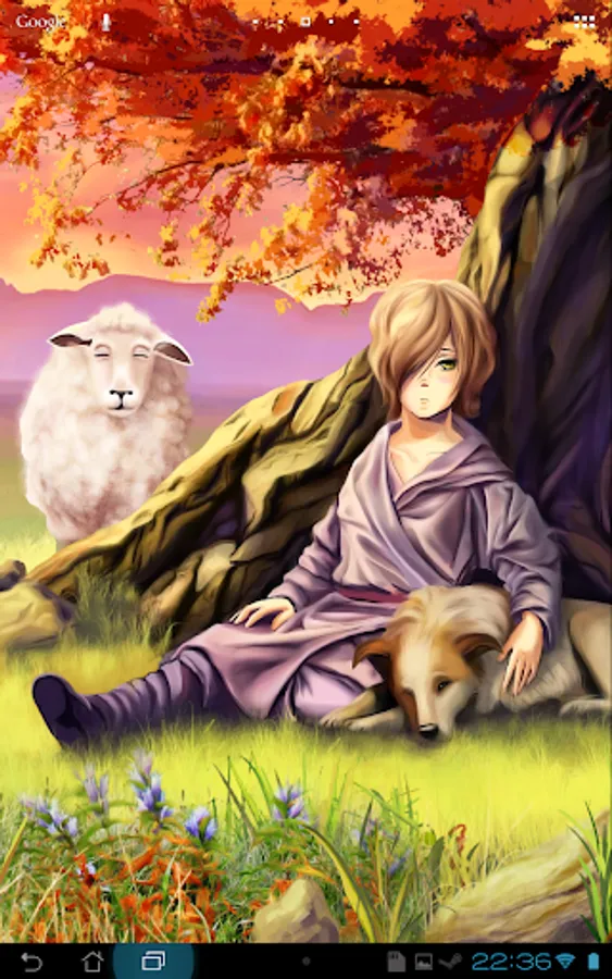 A lovely pastoral animated live wallpaper. Relax bathing in the warm sun rays under the tree as the breeze sways the leaves and the grass.