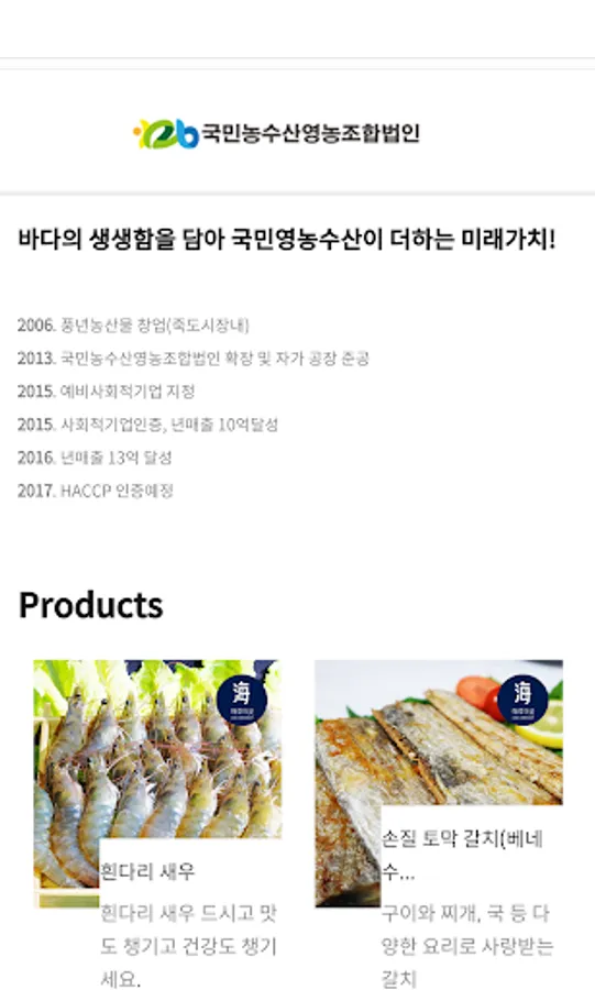 대부분 대기업에서의 생선가공이 선두였고 틈새 시장까지 진입이 어려워 이를 국민농수산영농조합법인에서는 "다품종 생선가공"이라는 가치를 내걸고 시장을 향해 열어가고 있습니다.