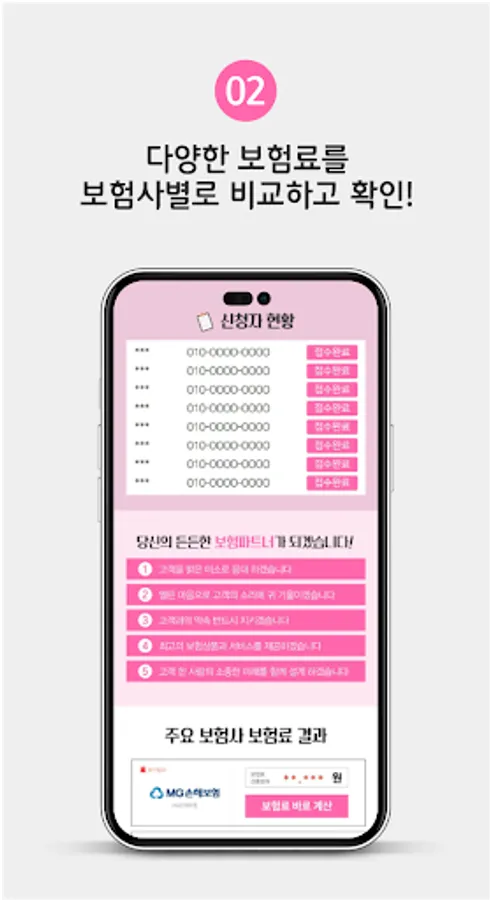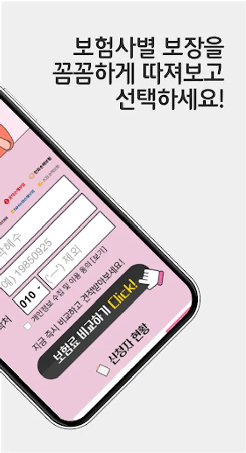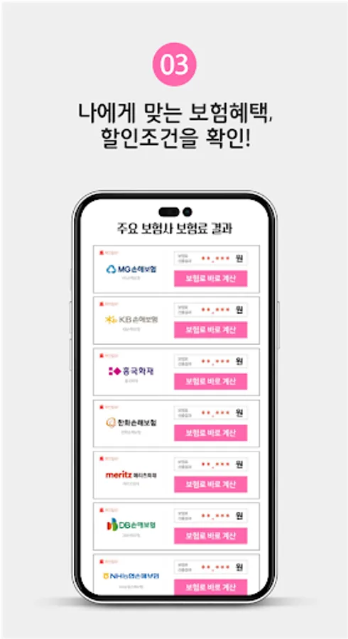 Our app reduces unnecessary authentication procedures such as public certificates, and provides a domestic integrated insurance comparison service with simple information input. After downloading the insurance premium calculation application, carefully examine and select the insurance company's guarantee and real-time premium!