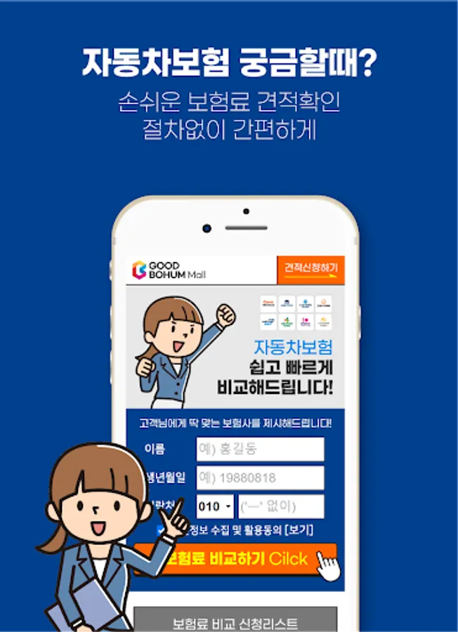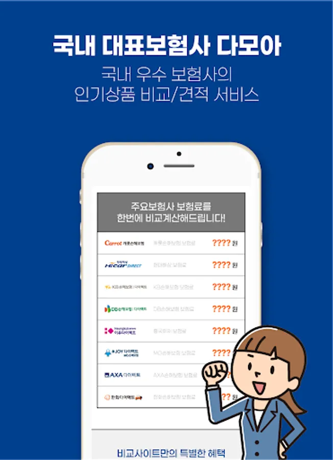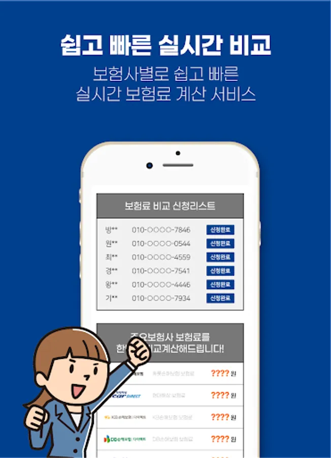 Find out and view auto insurance premiums from major domestic insurance companies in real time in the auto insurance premium comparison estimate app that omits the complicated authentication process! Introducing the easy-to-check car insurance premium comparison quote app. The car insurance premium comparison quote app helps drivers choose the car insurance they need wisely with the car insurance coverage that is right for them. Find out about auto insurance with strong guarantees and benefits, and find out all the special contracts and benefits related to auto insurance!