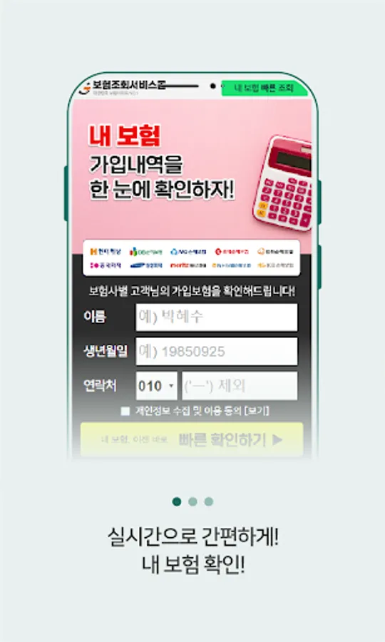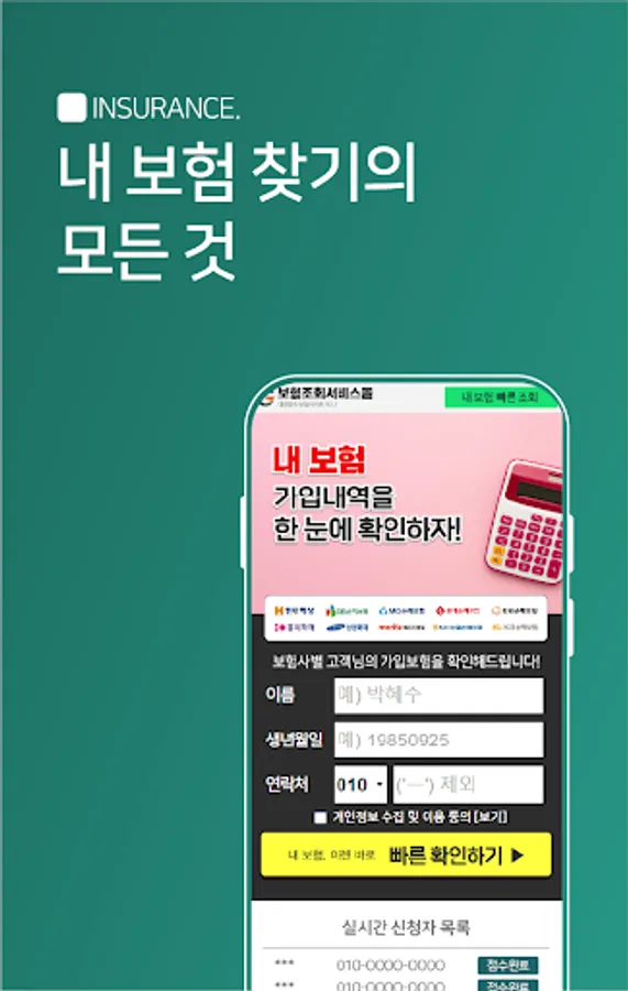 Find your insurance subscription history easily and quickly with one click! Check your scattered insurance at a glance and check your insurance status! You can also check the premiums of major insurance companies. Search My Insurance Find My Insurance Search Find My Insurance Find my insurance scattered through the Find My Insurance app and check the lack of coverage.