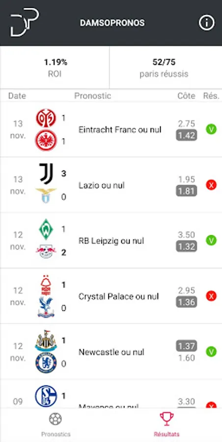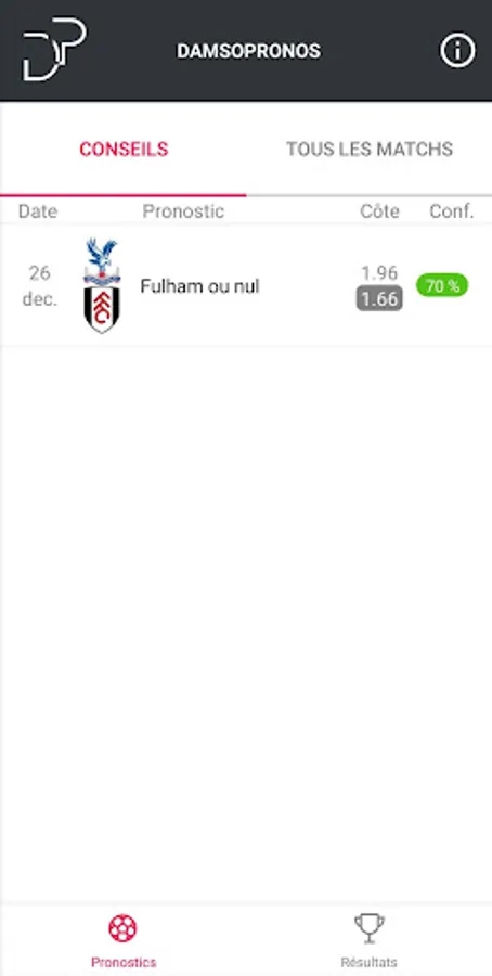 DamsoPronos is an advice and decision support app to win your sports bets.